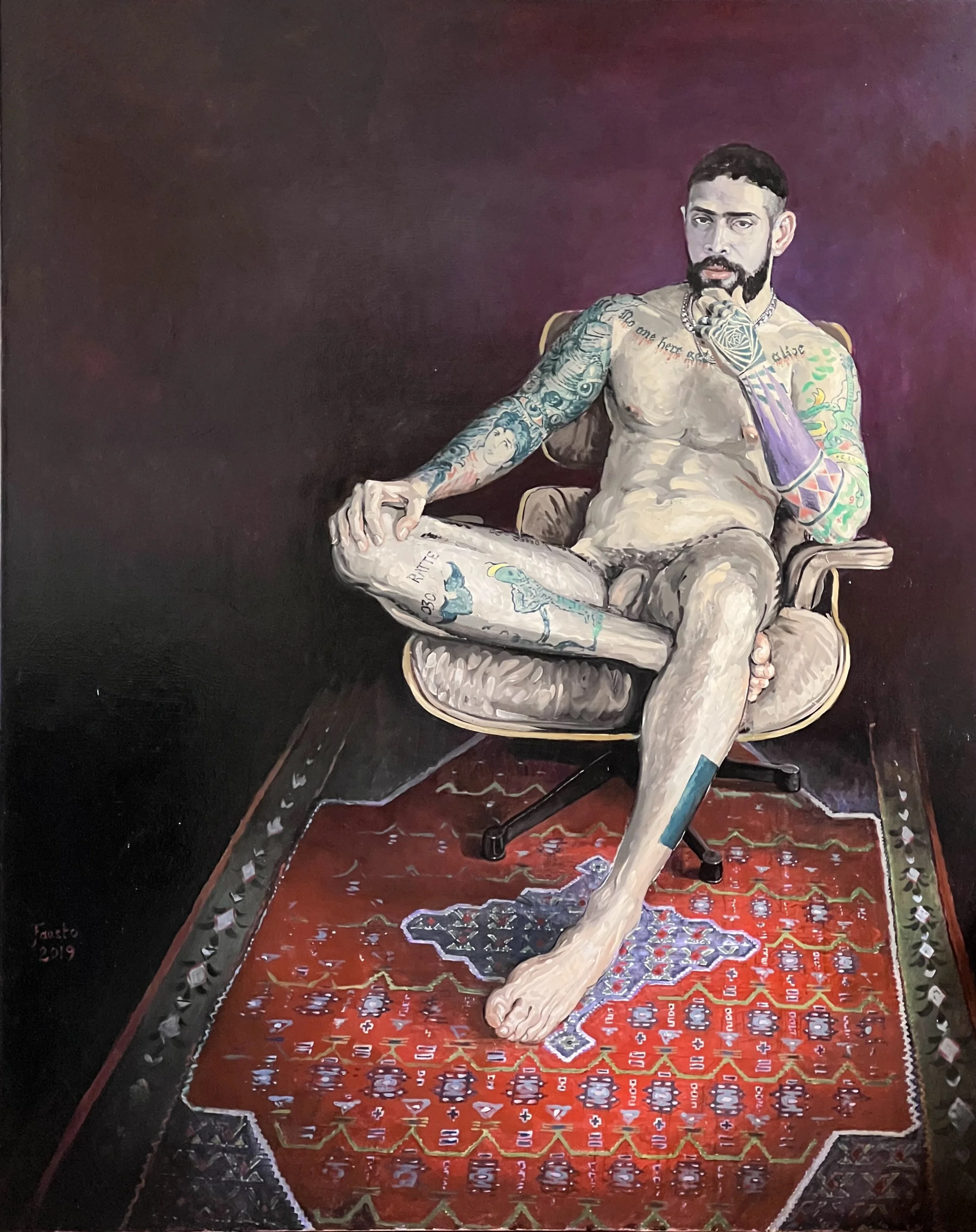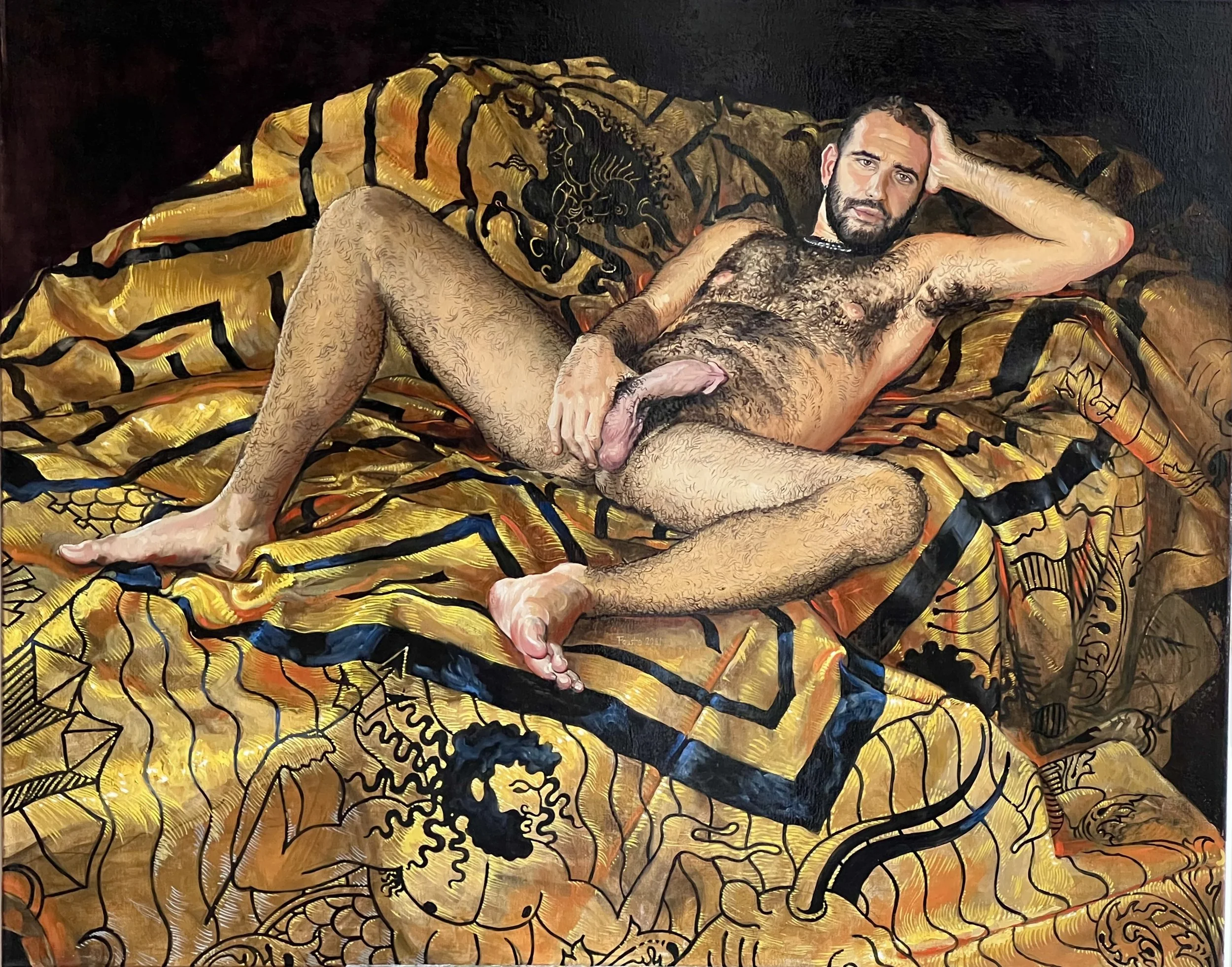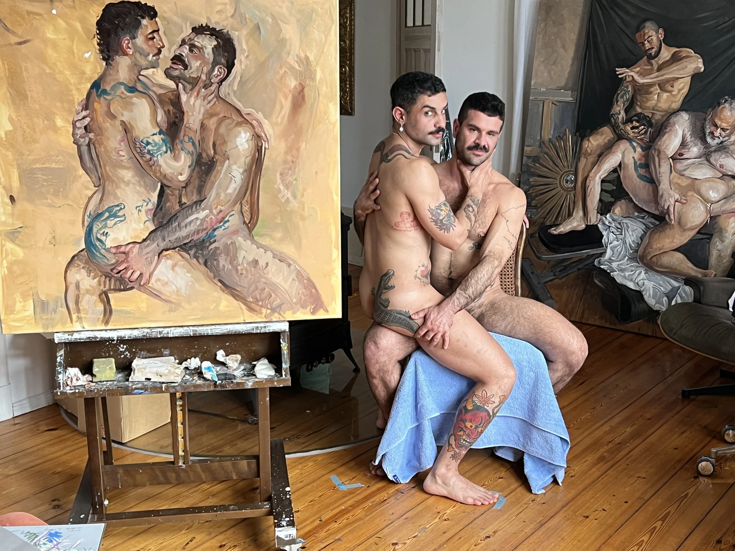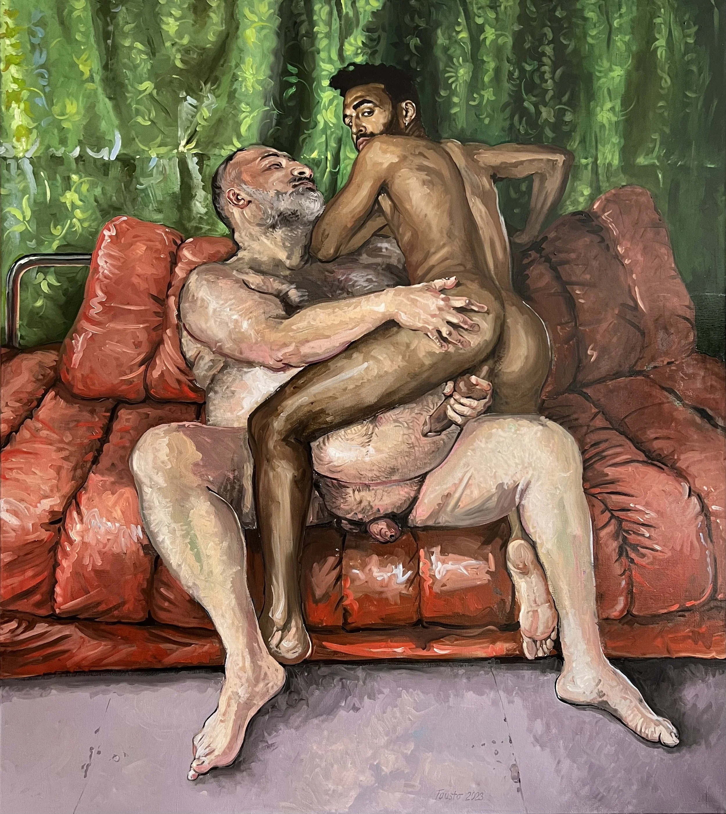 2013 Fausto began with portraying friends as nude models, also engaging in erotic and partially explicit scenes. It started with the work “Besuch”, depicting a than “characteristic” Sunday morning sex party that would randomly unfold at any private home when guys leave parties and open the Grindr App on their way home. Hence the name of this series..