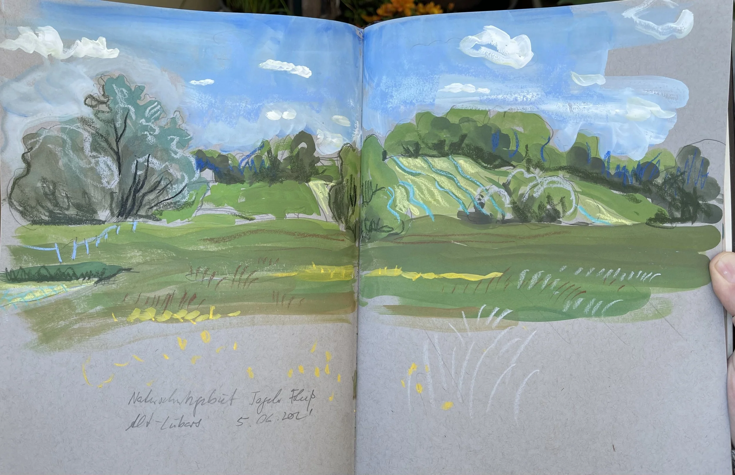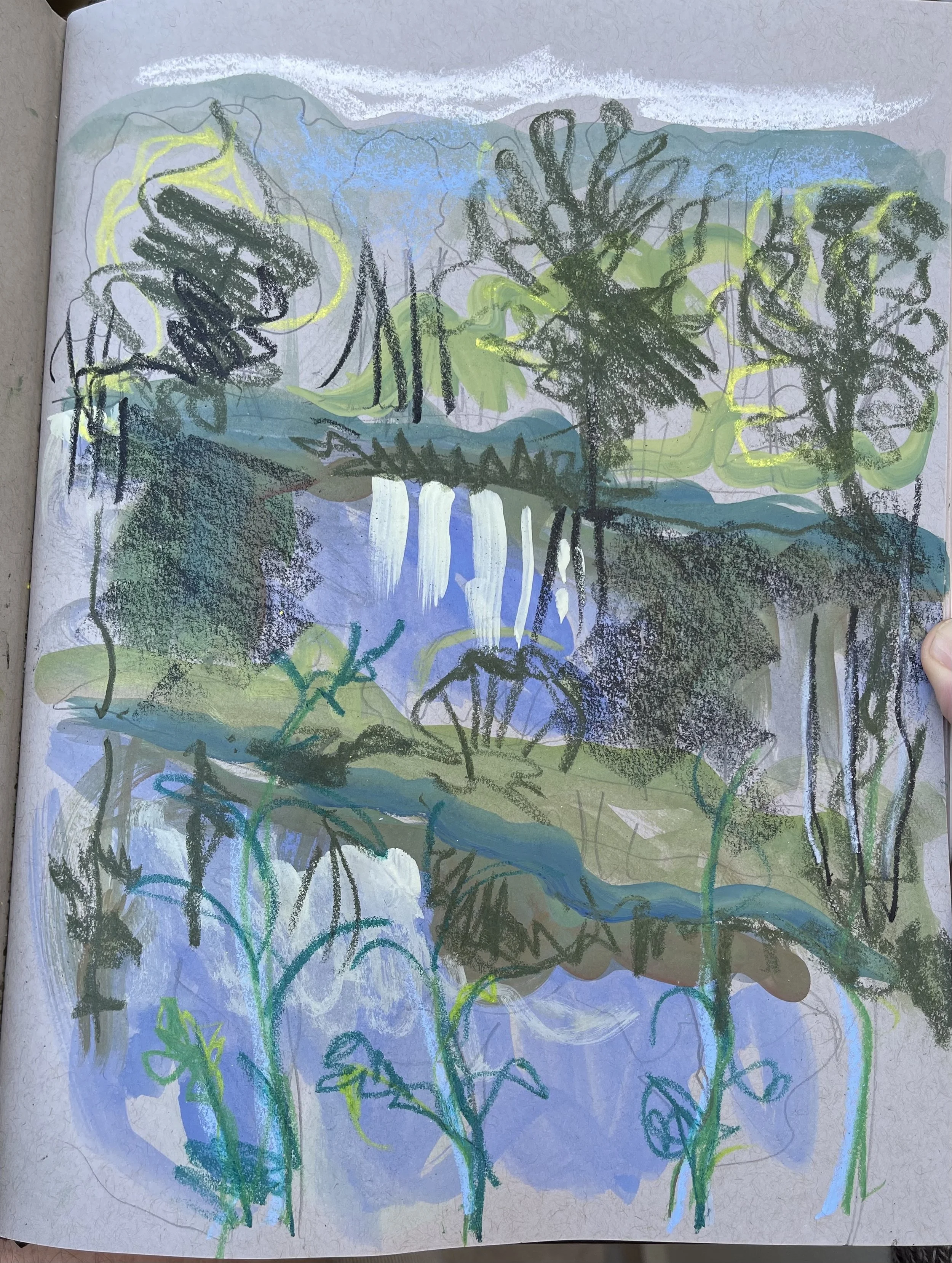 Köppchensee (lake Köppchensee), 2020, gouache and chalk sketch on grey paper