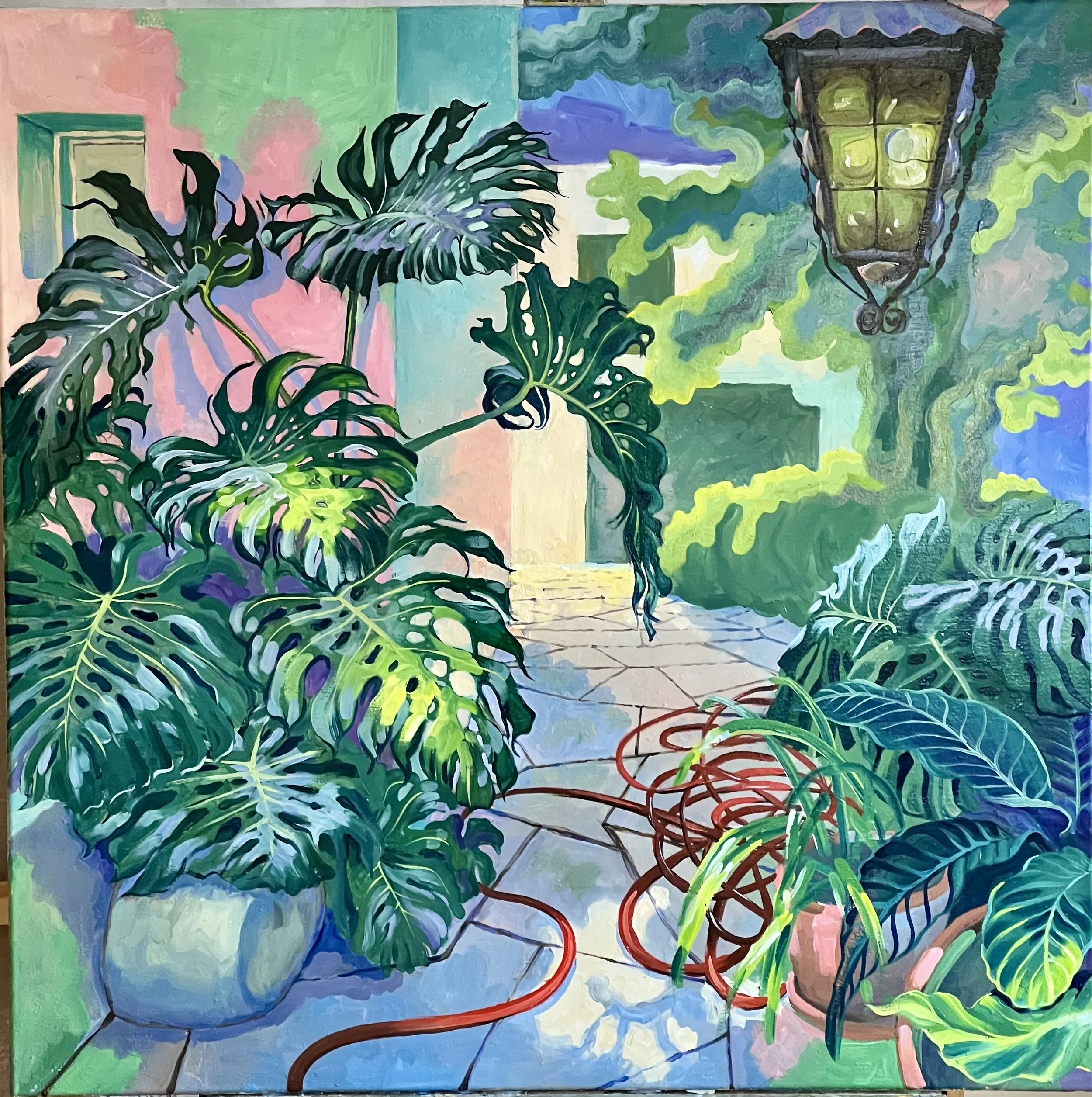 Garten in Guadalajara (garden in Guadalajara, Mexico), 2022, oil on canvas, 100 x 100 cm