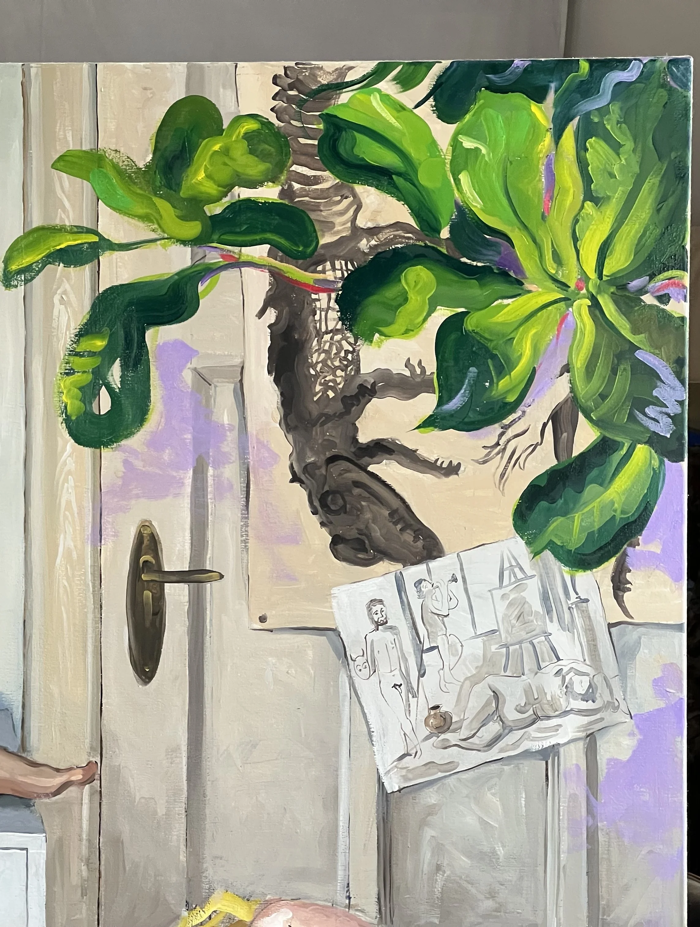 This study on “Monstera”-plants was carried out after sketches from a travel zu Mexico in 2022. This garden walk way belongs to an historic villa in Guadalajara wich houses the art gallery Travesía Cuatro.